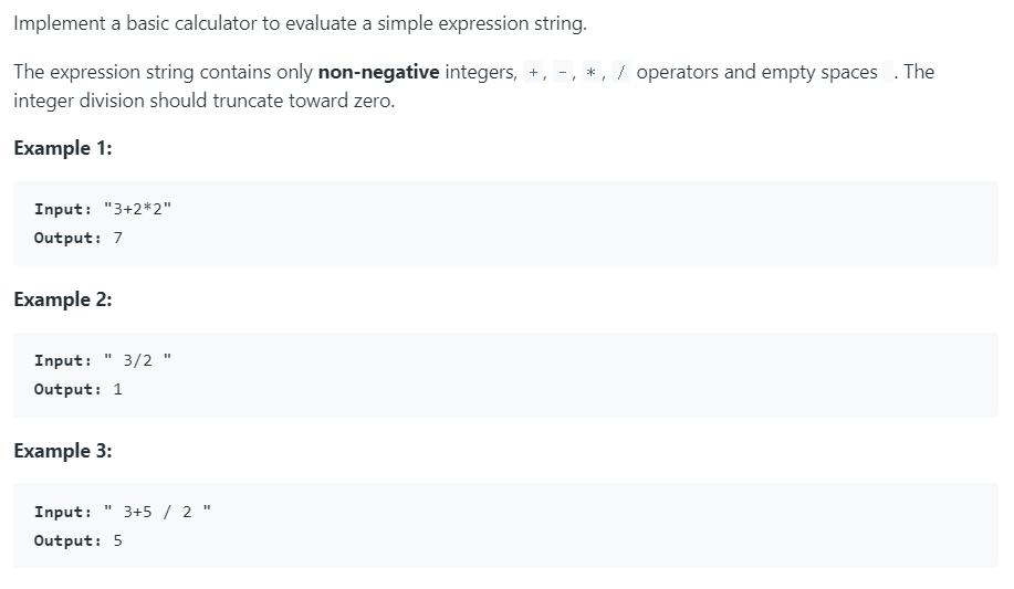 The expression string contains only non-negative integers - operators and empty spaces. You may assume that the given expression is always valid. 2493 222 Add to List Share.
